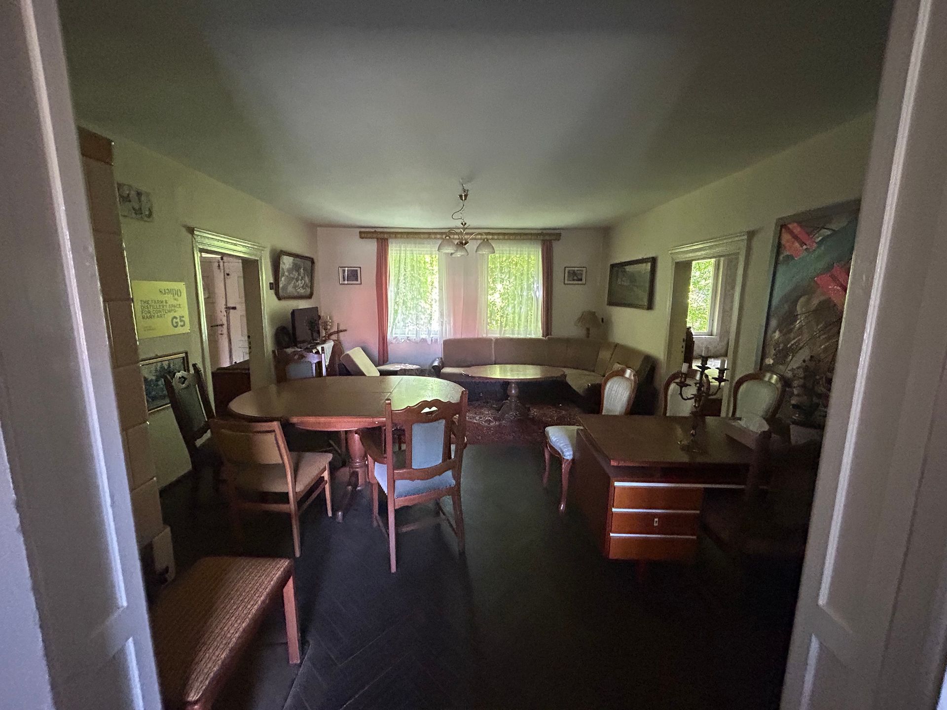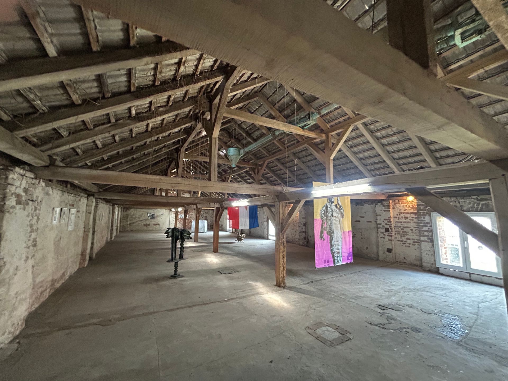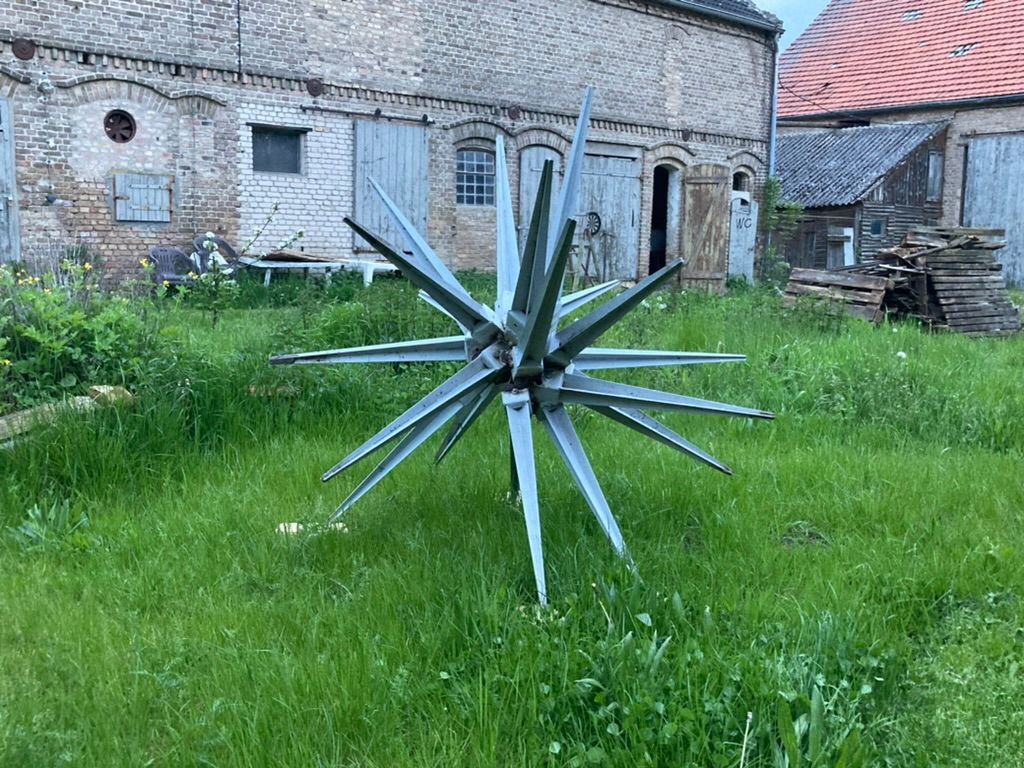 Four houses. Farm house with front porch, kitchen, bathroom, two floors, accommodation for 16 people (bed possibilities) additional camping or sofa possibilities. Two atelier houses each with 2 floors, one with a metal mechanics room for welding, one with a music room. Further a big barn, the right side currently under construction, an agricultural field and a little forest close to a creek in which you can swim.