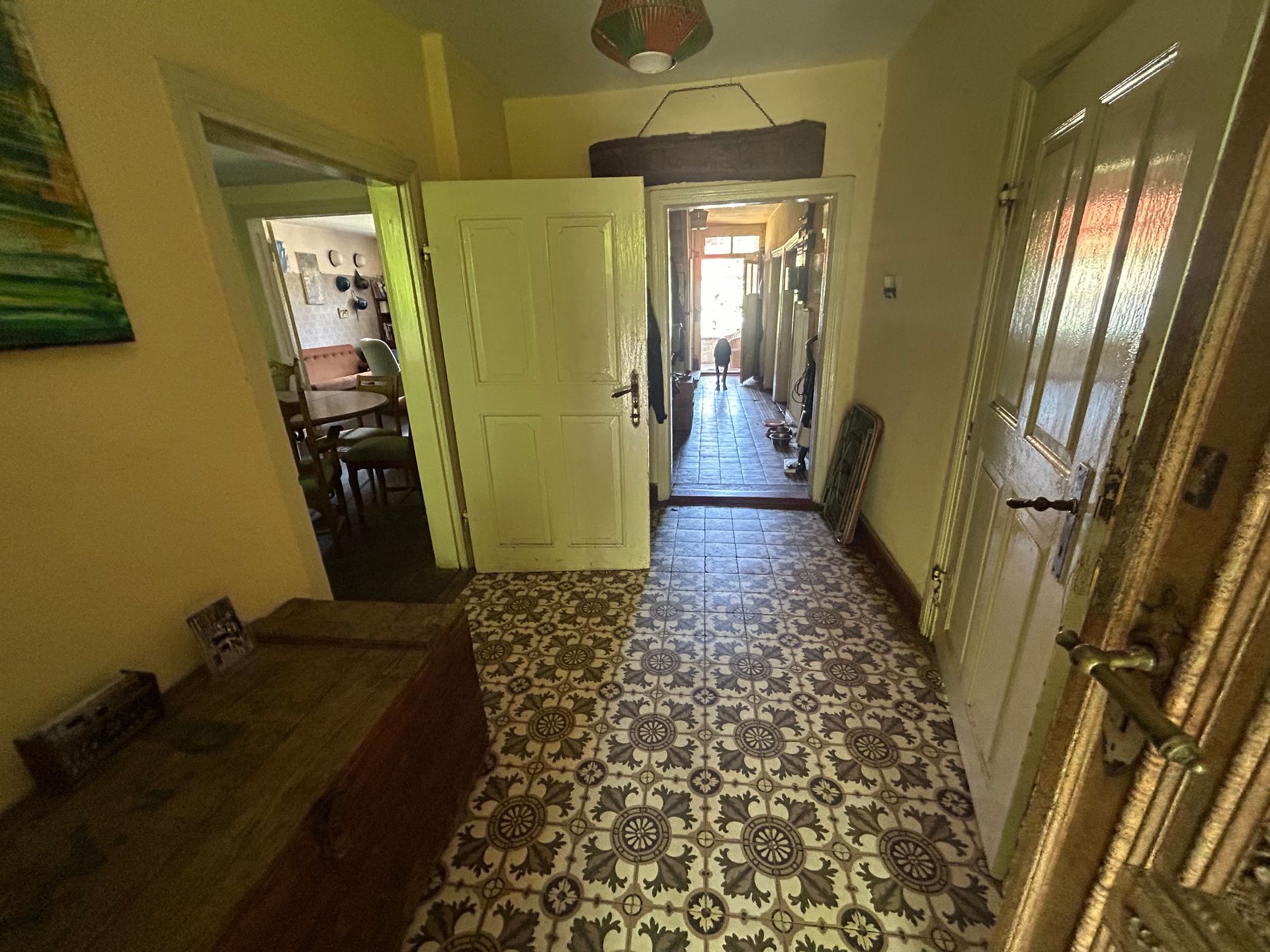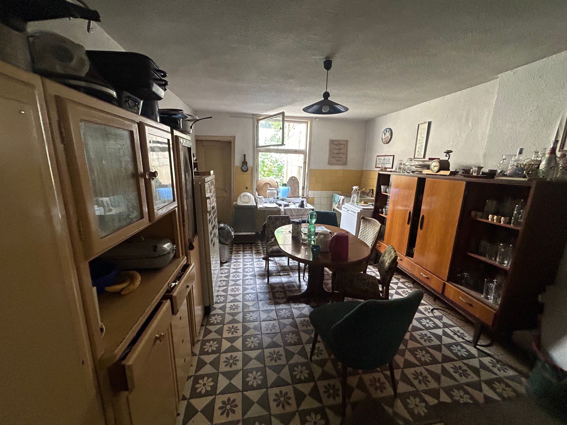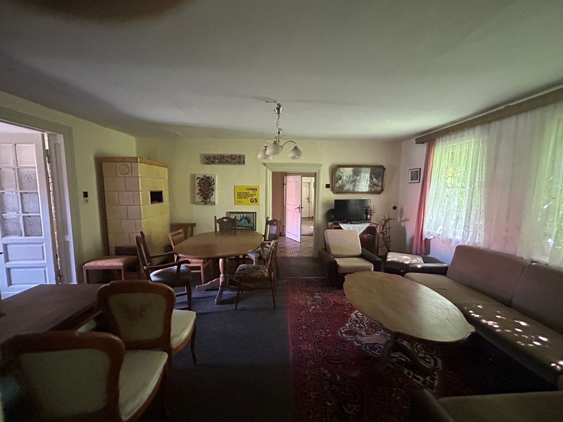 Four houses. Farm house with front porch, kitchen, bathroom, two floors, accommodation for 16 people (bed possibilities) additional camping or sofa possibilities. Two atelier houses each with 2 floors, one with a metal mechanics room for welding, one with a music room. Further a big barn, the right side currently under construction, an agricultural field and a little forest close to a creek in which you can swim.