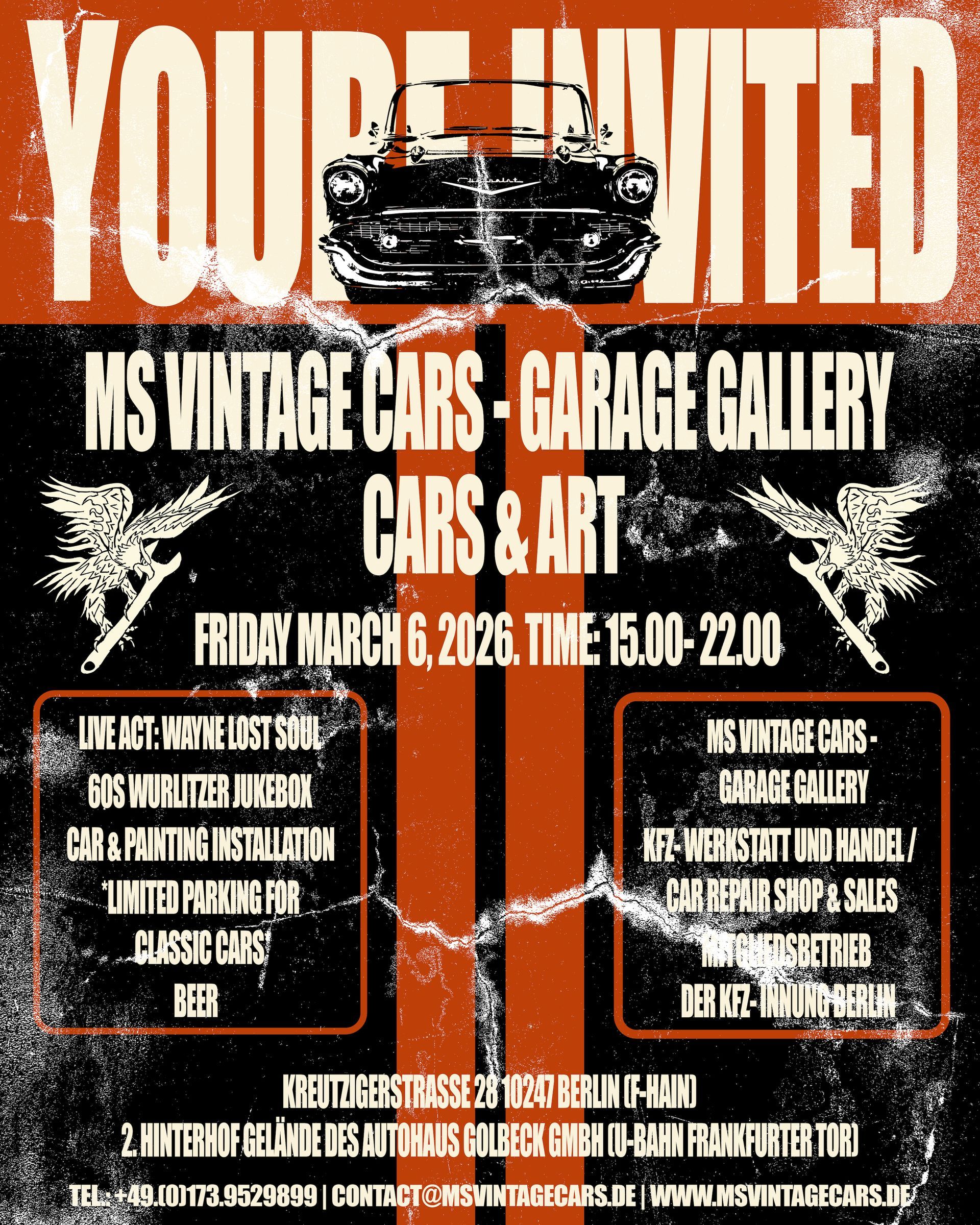 2026, MARCH 6, OPENING OF MS VINTAGE CARS - GARAGE GALLERY, PARTNER OF THE FARM & DISTILLERY. SEE FLYER.